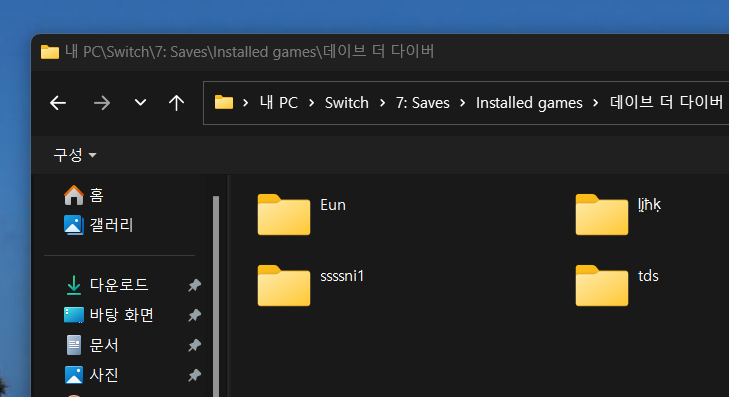 탐색기를 이용해 접근해 보면 위와 같이 '7.Saves' 폴더가 보입니다.
