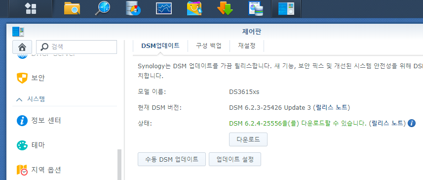 DSM 6.1.7 버전의 타오나스 DSM을 6.2.3 버전으로 업그레이드하였습니다.