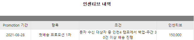 이외에도 어느 날은 출근하면 5만 원 추가 지급 등... 단순 배달비보다는 프로모션을 같이 활용하시는 게 수익성이 더 거 좋습니다.
