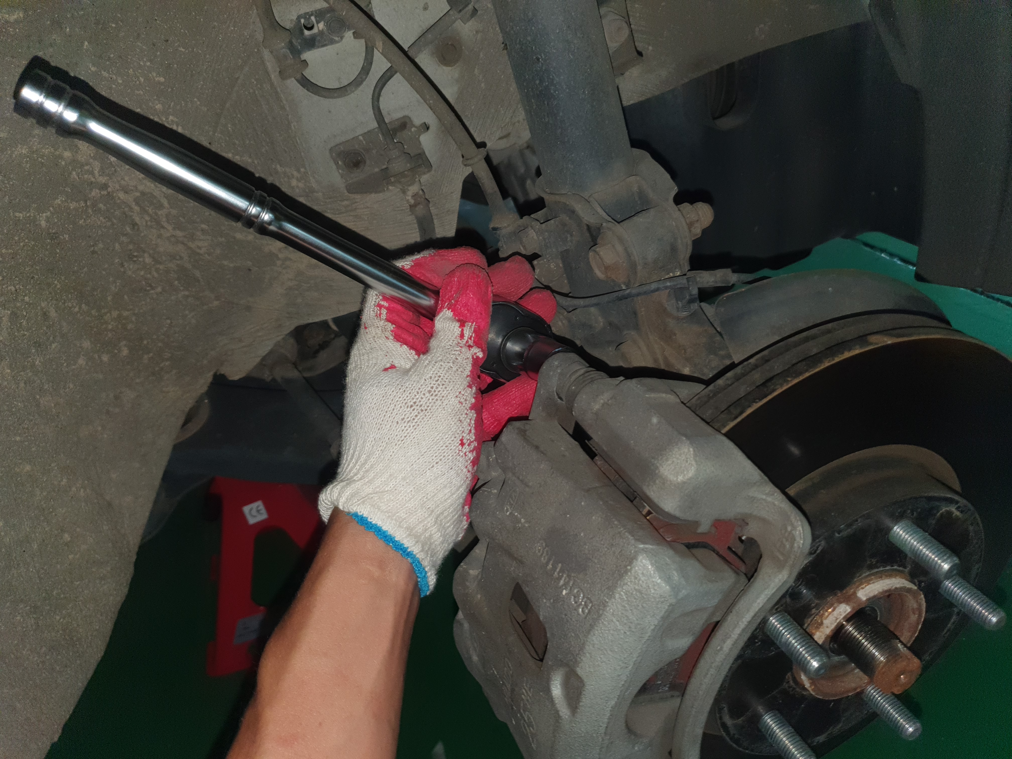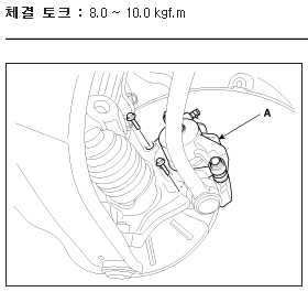 브레이크 캘리퍼 마운팅 볼트를 풀어줍니다. - 17mm