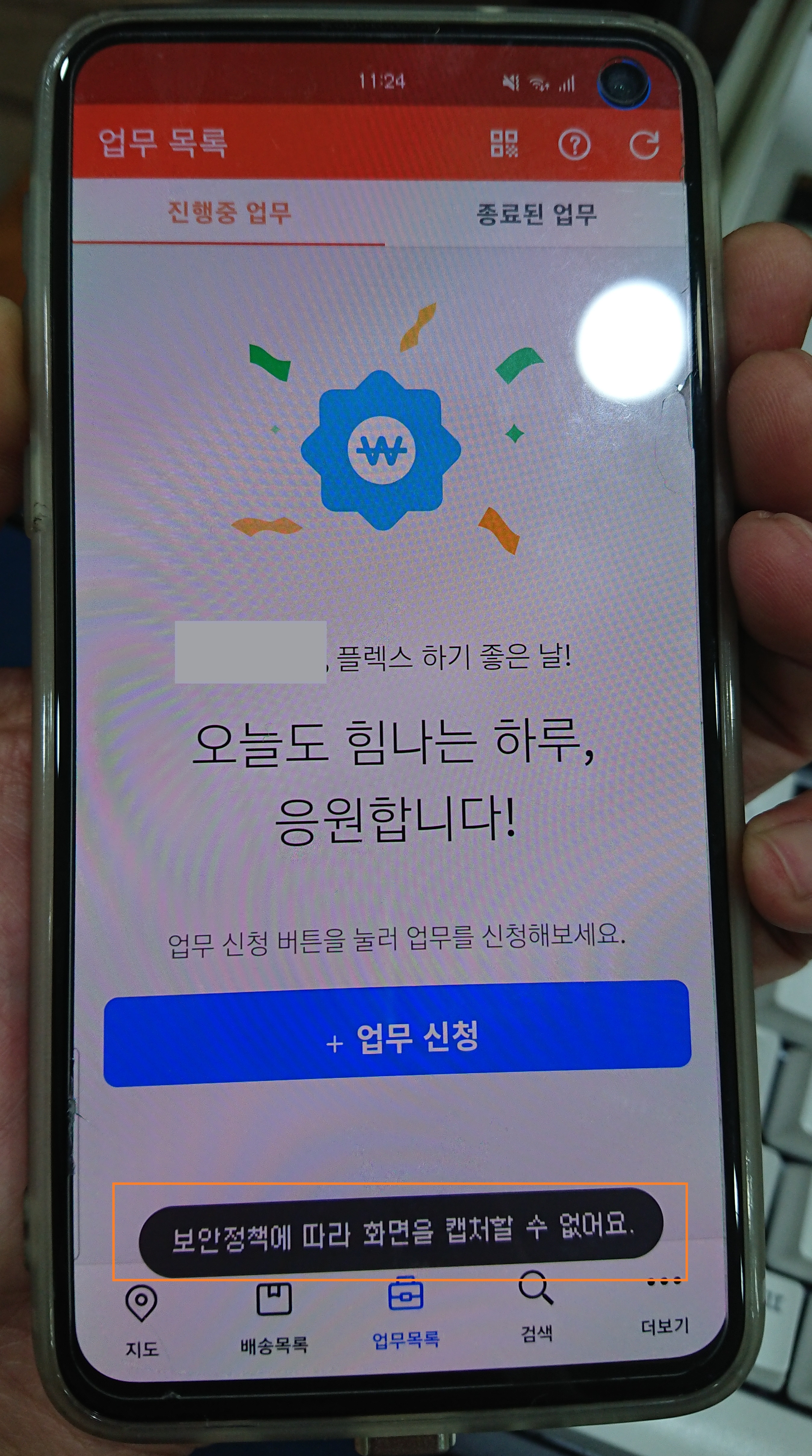 배달이 끝나면 그날의 수입을 저장해 두고 싶은데, 요즘의 안드로이드들은 FLAG_SECURE라는 것이 생겨 단말기단에서 캡처가 불가능한 것들이 있습니다.