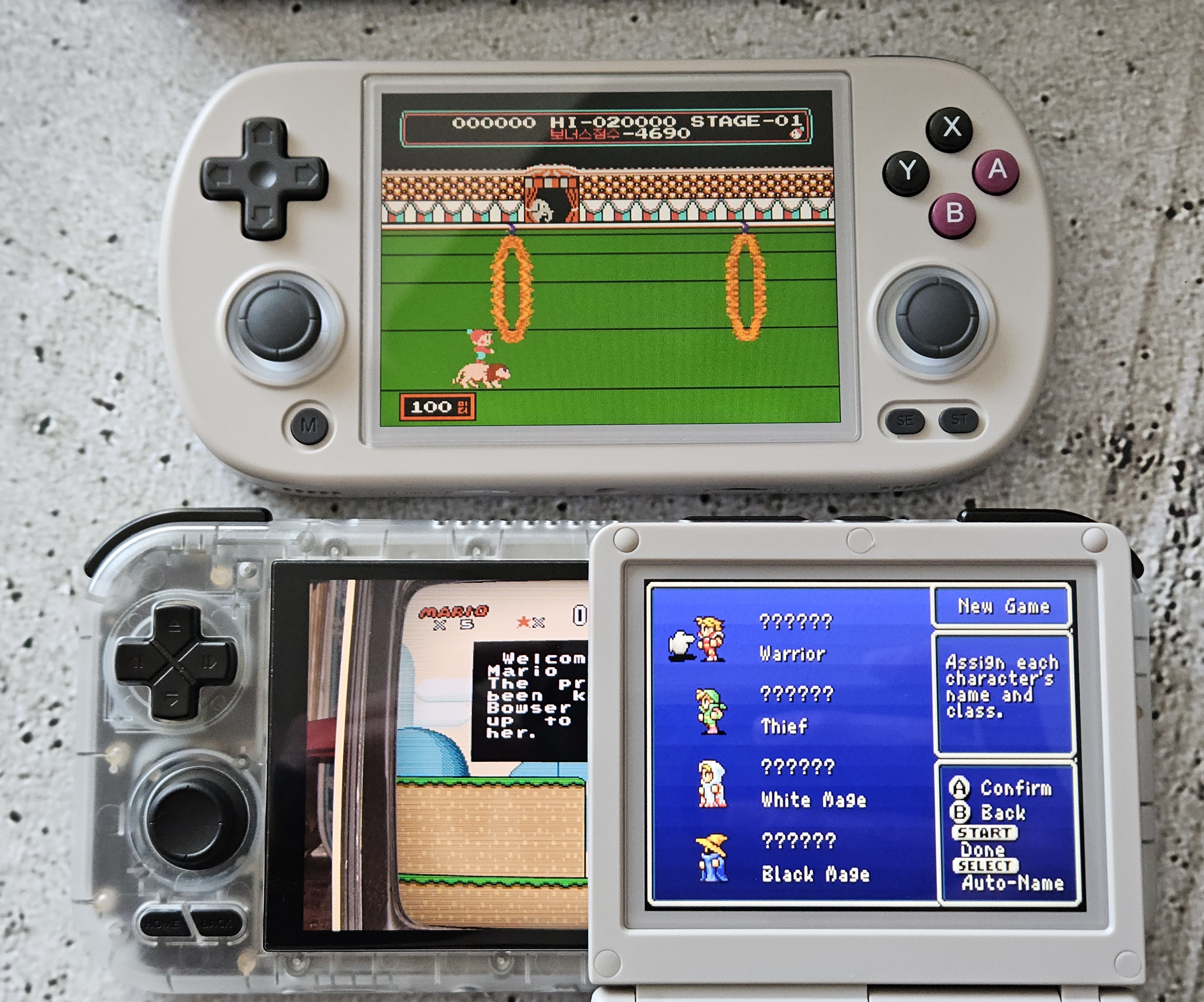 본문의 알리익스프레스 링크는 경유하여 제품을 구입 시 일정 수수료가 제게 지급되는 수익링크이나 제품 구매가격에 영향을 미치지는 않습니다. 기존에는 큰 화면의 4:3 비율의 에뮬레이터 기기들이 거의 앤버닉 독점처럼 나왔었는데 시간이 흘러 이제는 훨씬 저가형 게임기들에서도 4인치 크기에 4:3 비율의 화면이 달린 녀석들이 보이기 시작합니다. R46H의 판매페이지에는 4.2인치라고 적혀있으나 이는 베젤부를 포함한 것으로 실제 화면은 4인치입니다.어차피 이 제품을 사실 분들은 드물겠지만 해상도가 일반적인 640*480이 아닌 1024*768인데다 앤버닉의 같은 4인치 크기의 기기들의 칩셋이 H700인 반면 RK3326 칩셋의 성능으로는 아무래도 640*480 해상도를 가진 기기들보다 버벅거릴 수밖에 없는 문..